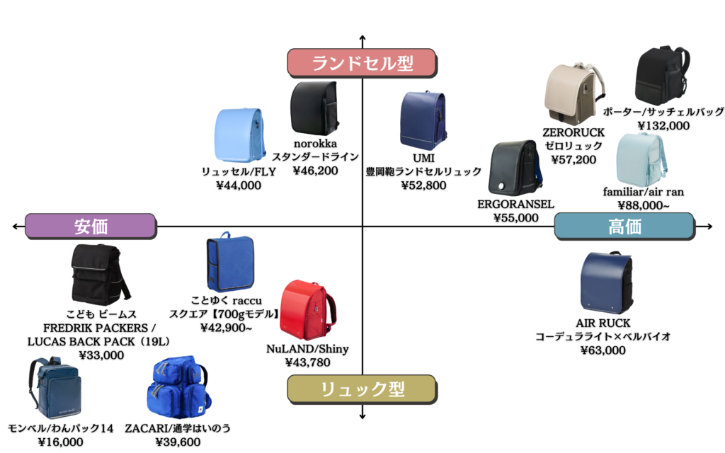 従来の革製ランドセルと異なり、ナイロンなどのランドセルリュックはファッションブランドやスポーツブランド、アウトドアブランドなどが参入し、それぞれの特長を活かした製品が市場に登場しています。