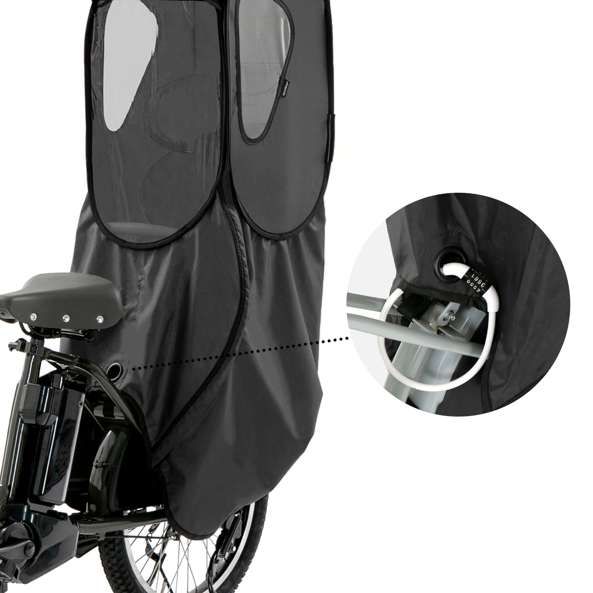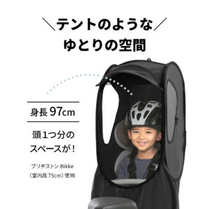 テントのようなゆとりの空間だから、子どもが喜んで乗ってくれ、成長しても安心です。大きな前後の通気口により雨でファスナーを閉めていても、しっかり通気。雨が止んだら前窓を開けられるので快適です。