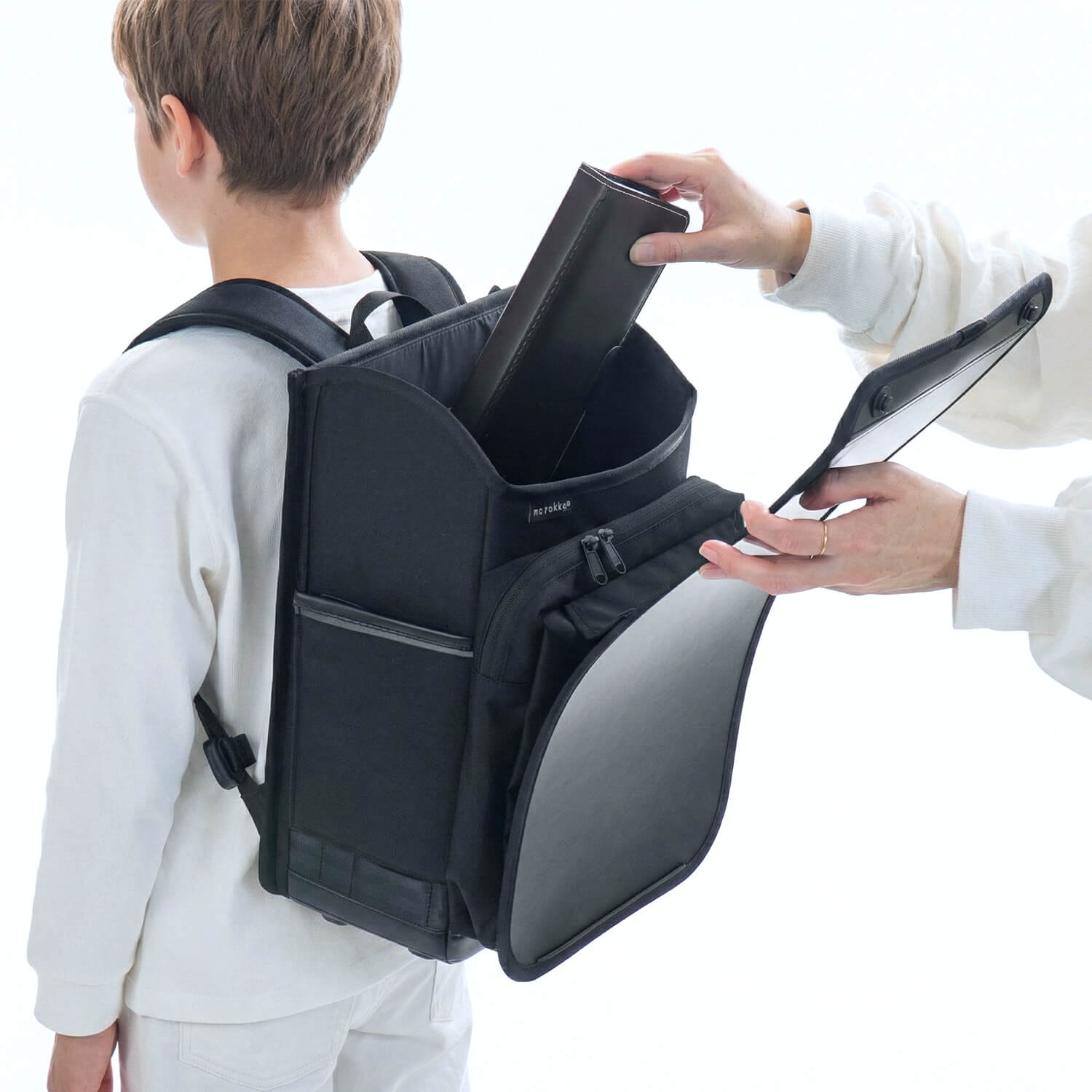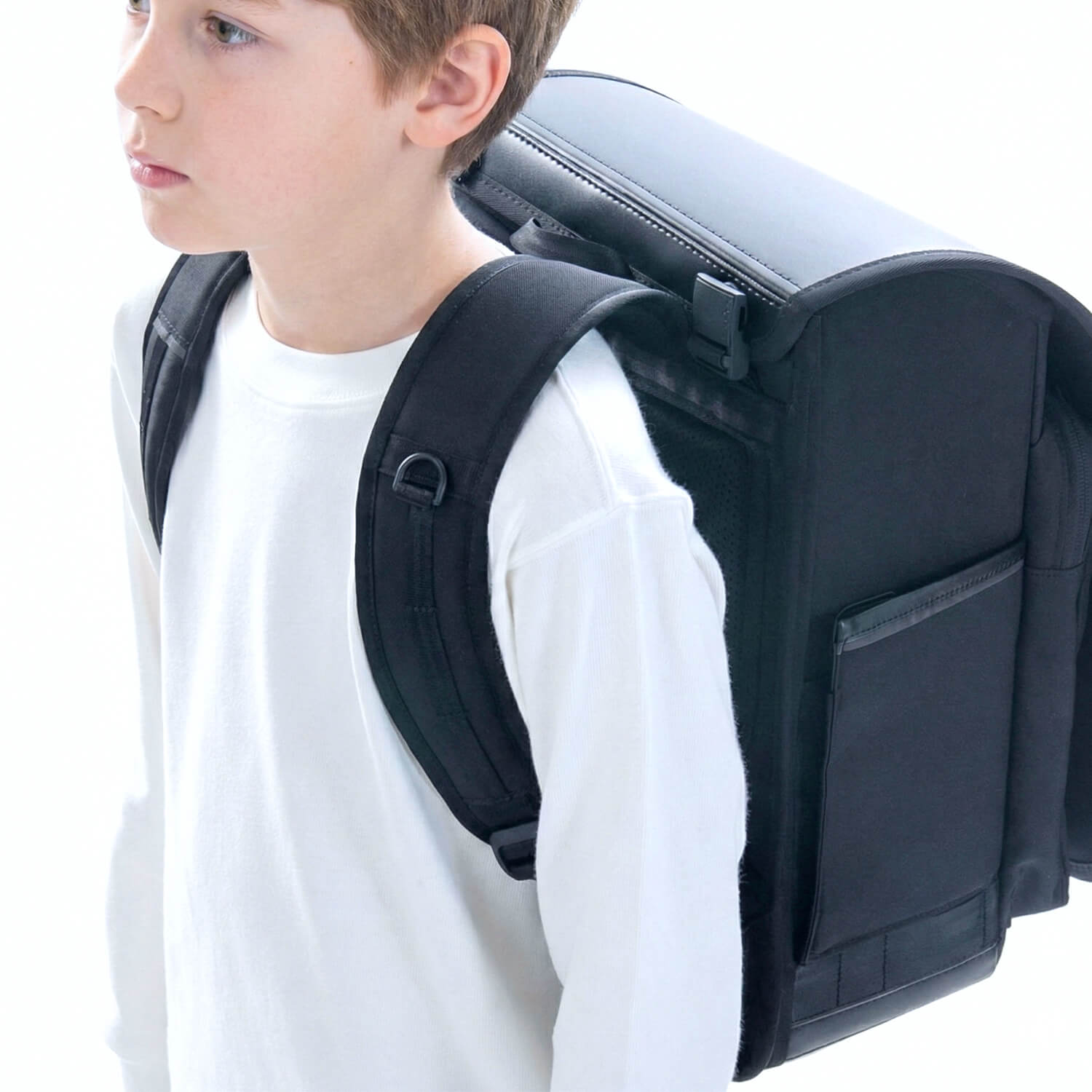 その代わりに、本体上部には「荷物空間」を確保。荷物を中心にまとめることで、正しい姿勢と軽快な背負い心地を保ちます。なお、高学年になり荷物が増えた際は、下部に装着できる「オプションバッグ(別売)」で容量を拡張することも可能です。