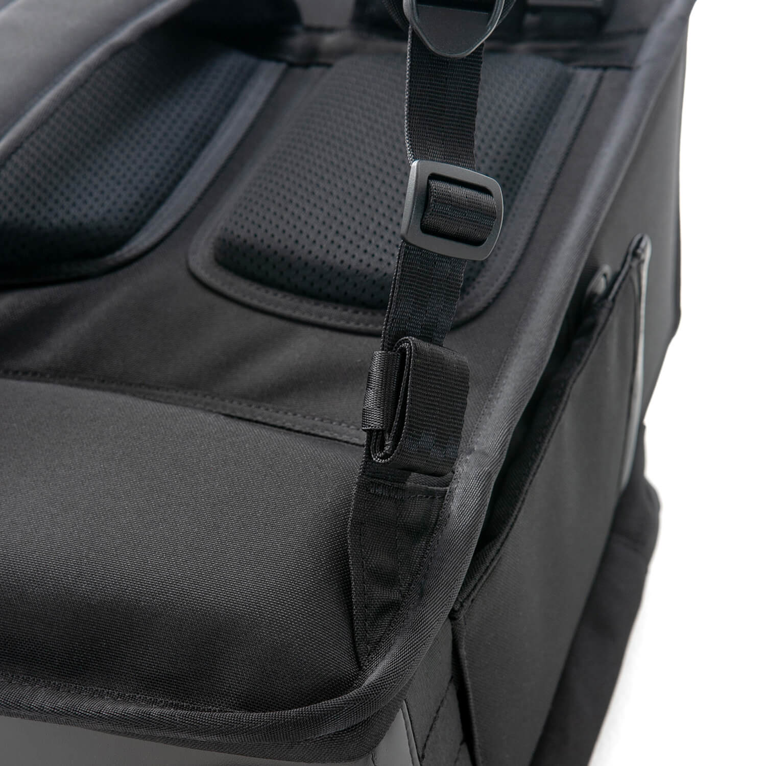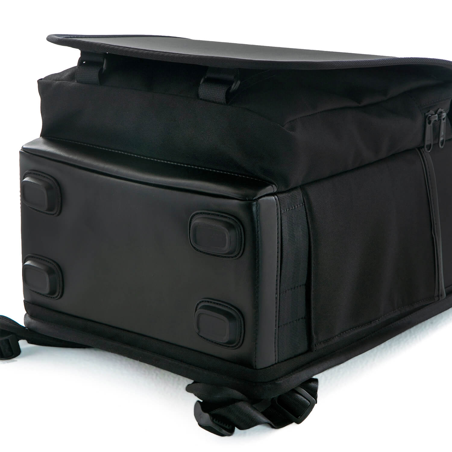 フラップの芯材には防水素材を採用していますが、大雨の際には縫い目や隙間から雨が浸入するおそれがあります。大切な荷物を守るため、雨天時には「レインカバー(別売オプション)」のご使用を推奨しています。