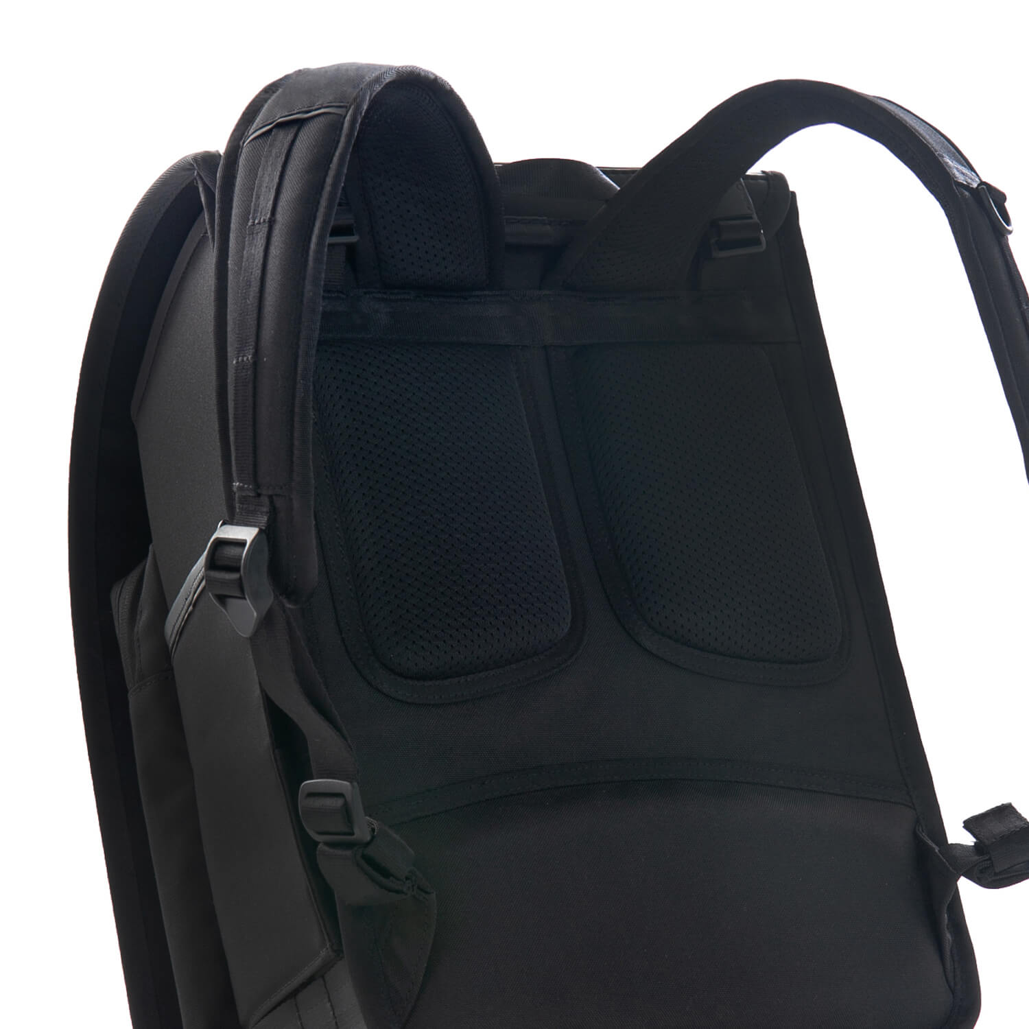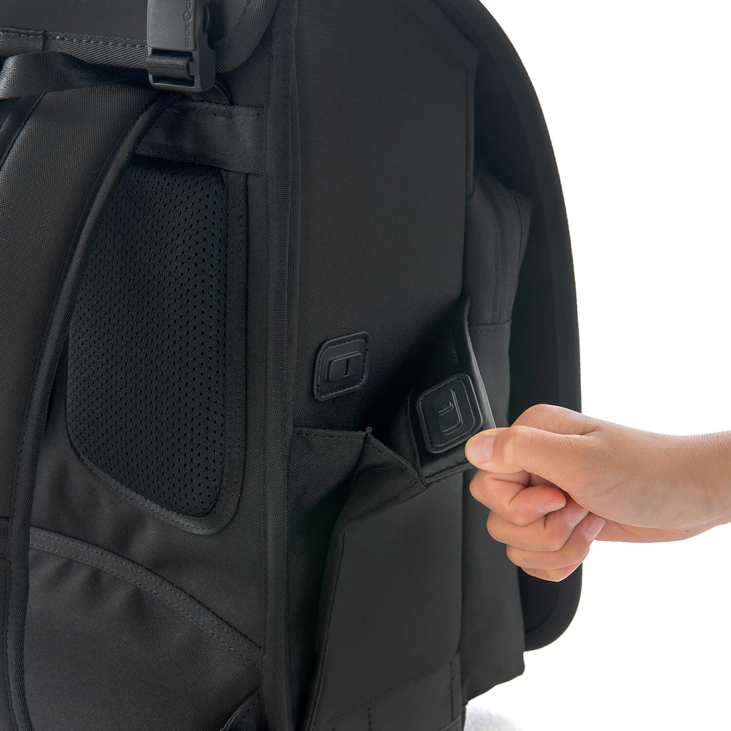 フックに掛けた荷物が何かに引っかかり、転倒や事故に繋がるリスクを未然に防ぐため。そして、荷物の重さが片側に寄ることで、姿勢に悪影響を及ばせないため。これらを考慮した結果です。