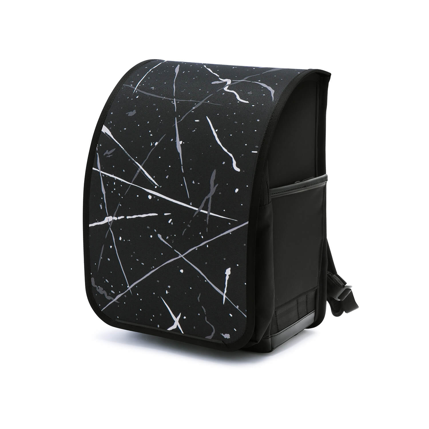 枠にとらわれず自由に描かれたスプラッシュ。フラップは Cordura®︎ EcoMade 生地を採用。