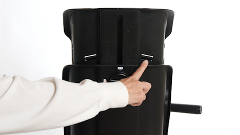 レインカバー背面のヒネリ留具を回して固定します。